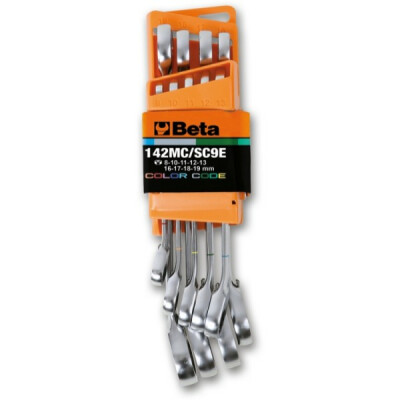 Conjunto de 9 chaves combinadas coloridas com catraca reversível, com suporte compacto BETA 18001422087 BETA 018001422087