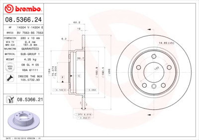 Jogo de discos de freio COATED DISC LINE BREMBO 08.5366.21