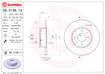 Jogo de Disco de travão BREMBO 08.3126.14
