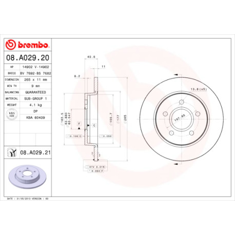 Conjunto de discos de freio BREMBO 08.A029.20 BREMBO 08.A029.20