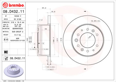 Jogo de 2 discos de freio BREMBO 08.D432.11 BREMBO 08.D432.11