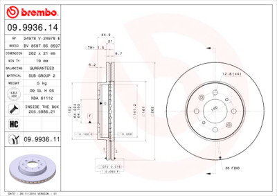 Jogo de Disco de travão BREMBO 09.9936.11